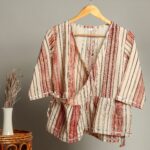 elegance to your wardrobe with this handcrafted block print cotton Designed with intricate floral motifs on a soft beige base, this top is perfect for casual outings, office wear, or ethnic styling. The long sleeves with contrasting red printed cuffs bring a unique charm, blending traditional artistry with modern comfort.